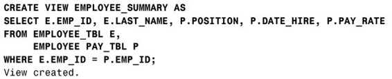 3.再次创建练习2中的摘要数据视图,但不要使用表EMPLOYEE_TBL,而是使用练习1中所创建的视图。比较两个结果。