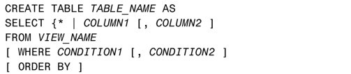 我们可以从视图创建一个表,就像从一个表创建另一个表(或从一个视图创建另一个视图)一样。