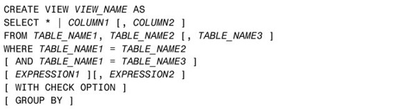 视图是通过CREATE VIEW语句创建的。我们可以从一个表、多个表或另一个视图来创建视图。为了创建视图,用户必须拥有适当的系统权限。
