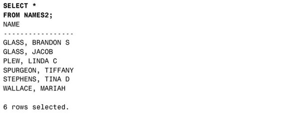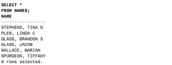 现在可以从视图NAMES里选择全部数据: