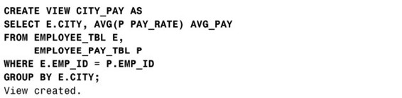 2.编写一个语句创建一个包含摘要数据的视图,显示表 EMPLOYEE_TBL 里每个城市的平均小时工资和平均薪水。