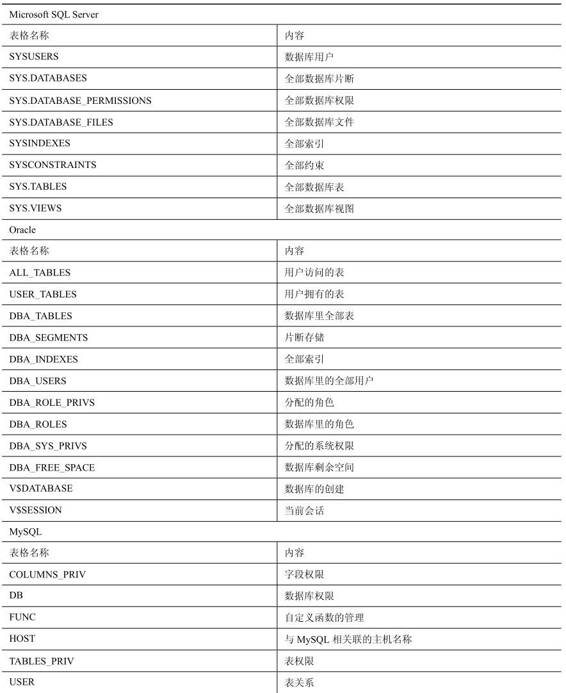 数据库其他对象的信息,比如视图、异名、触发器和存储过程;