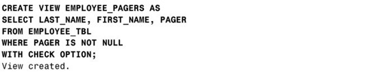 在这个范例里,WITH CHECK OPTION会确保视图的PAGER字段里不包含NULL值,因为视图定义所依赖的数据里不允许在PAGER字段里包含NULL值。