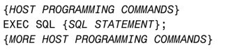 调用级接口(CLI)用于把 SQL代码嵌入到主机程序,比如ANSI C。程序员应该很熟悉调用级接口的概念,它是把SQL嵌入到不同的过程序编程语言的方法之一。在使用调用级接口时,我们只需要根据主机编程语言的规则把SQL语句的文本保存到一个变量里,然后利用这个变量就可以在主机程序里执行SQL语句。