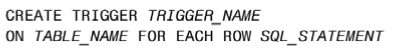 MySQL里的触发器还可以调整触发条件。FOR EACH ROW语法可以让过程在SQL语句影响每条记录时都触发,或是一条语句只触发一次。其语法如下所示:
