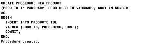 下面是一个很简单的存储过程,它在表PRODUCTS_TBL里插入一行新记录: