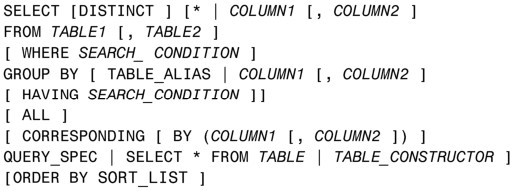 从这些语法的比较可以看出,它们基本上是相同的。它们都具有 SELECT、FORM、WHERE、GROUP BY、HAVING、UNION和ORDER BY子句,这些子句在工作概念上是一样的,但有些具有额外的选项,这些选项就被称为扩展。