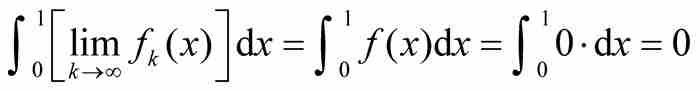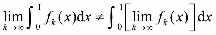 把这个结果同式(2)比较,就显现令人沮丧的事实:函数序列积分的极限不一定等于极限函数的积分。用符号表示,我们得到