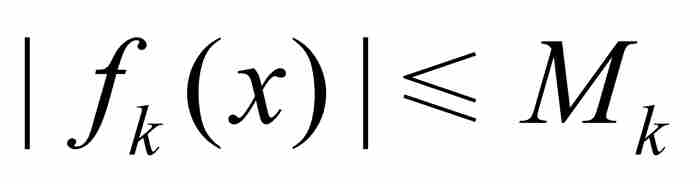 。由M检验法立即推出函数f (x) 一致收敛。此外,如果对部分和Sn(x)应用定理1和定理2,可知f本身也是连续函数,因为每个部分和函数是连续的,并且