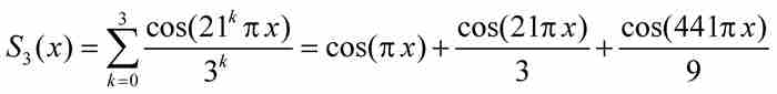 的图形是否会给我们一些启发呢?很遗憾,由于f是函数项的一个无穷级数,我们只能停留于画出部分函数和的图形。例如,我们在图9-8中仅画出第3个部分和