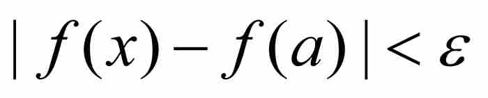 ,那么f在a是连续的。采用魏尔斯特拉斯的语言,这意味着对于每个ε > 0,存在一个对应的δ > 0,使得只要