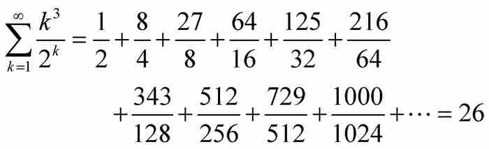 在《论无穷级数及其有限和》一文中这一部分的最后,雅各布讨论了以立方体数为分子和等比数列为分母的无穷级数。