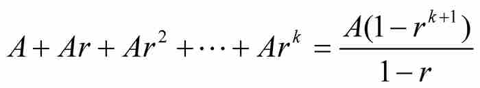 注意式(1)用到了有限等比数列的第1项(A)、第2项(B)和最后一项(E)。这与我们今天看到的标准求和公式