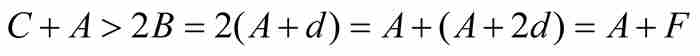 定理 如果A, B, C,…, D, E是公比为r>1的正数项的等比数列,而A, B, F,…, G, H也是从A和B开始的正数项的等差数列,那么,等比数列中其余每一项都大于对应的等差数列中的相应项。