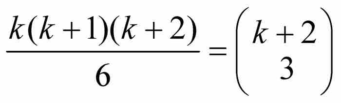 同样,棱锥体数是1, 4, 10, 20, 35, …,它们是以三角形为底的棱锥垛中弹丸的数目。可以证明,第k个棱锥体数是