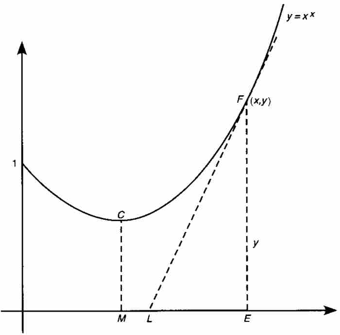 轴上切线下方的线段LE。为做到这一点,他首先对曲线方程两端取对数: