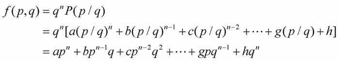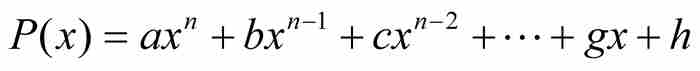表示它的次数最低的多项式,其中a, b, c, …, g, h为整数,n≥2(如果n=1,如像上面指出的那样,那么代数数是有理数)。由于