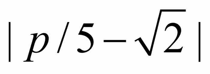 ----------------------------------- 3/5=0.600.8142 4/5=0.800.6142 5/5=1.000.4142 6/5=1.200.2142 7/5=1.400.0142 8/5=1.600.1858 9/5=1.800.385810/5=2.000.585811/5=2.200.785812/5=2.400.9858