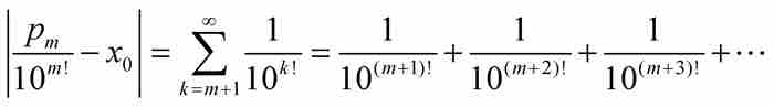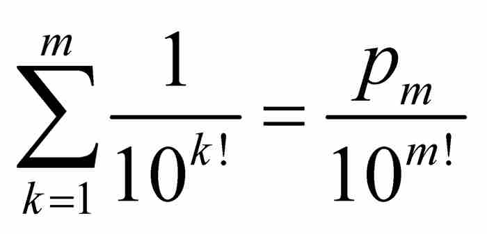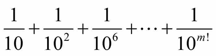 的空隙。我们很难想象刘维尔是怎样注意到这一点的。他走到了这一步,并且提供了一个巧妙的证明,这是他的卓越数学才能的一次展现。然而,倘若他不再迈出下面这一步,这一切也许早已被人们遗忘:他利用他获得的结果找到了世界上第一个超越数。