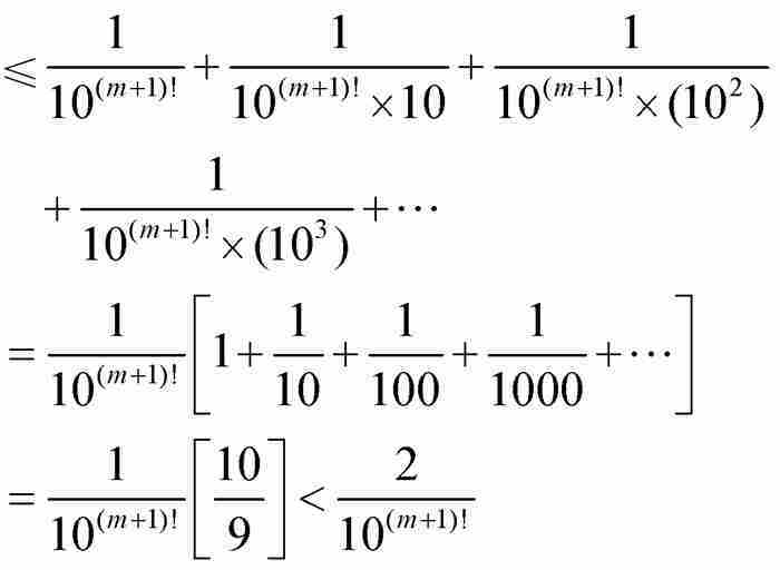 ,或者简单地说,对于所有m > n,有2 A* > 10m!。这样一个不等式是荒谬的,因为2 A*是一个固定的数,而10m!当m增大时趋向无穷大。刘维尔(最终)导出一个矛盾。