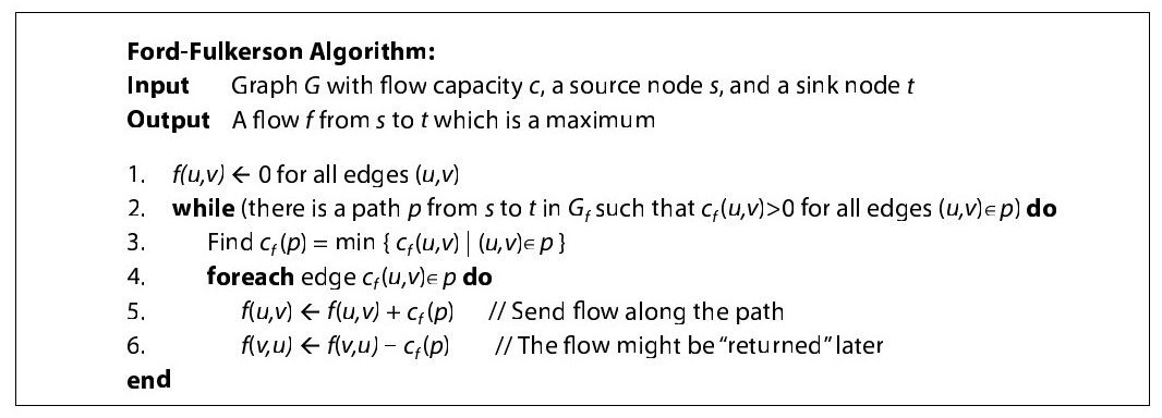图 P-1 教科书中常见的伪代码图中的算法描述来自于维基百科(http://en.wikipedia.org/wiki/Ford_Fulkerson),这个描述与《算法导论》上的伪代码极其相似。最好还是不要期望一个软件的开发者能够根据这个Ford-Fulkerson算法的描述开发出实际的代码。翻到第8章,对比一下我们的代码。我们只使用有注释的,并且是精心设计过的代码。在你自己写的代码或者软件系统中使用我们提供的现成代码,或者这些代码的逻辑吧。
