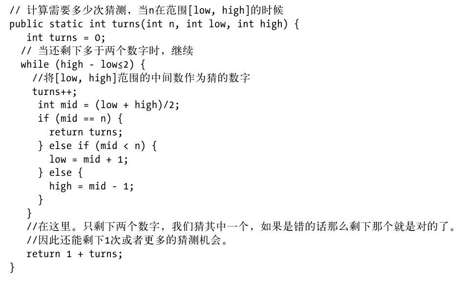 例2-1:在范围[low,high]之间猜数字的Java代码