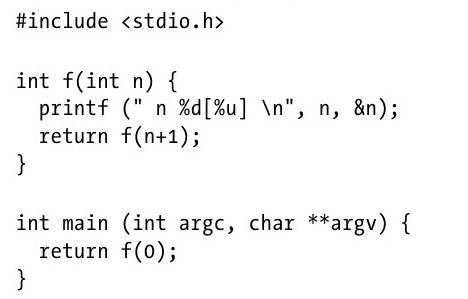 在例3-2中,这个无限循环在第393 060次循环调用的时候,产生了一个“段错误”,这个时候执行栈的大小已经超过了12 577 888字节。