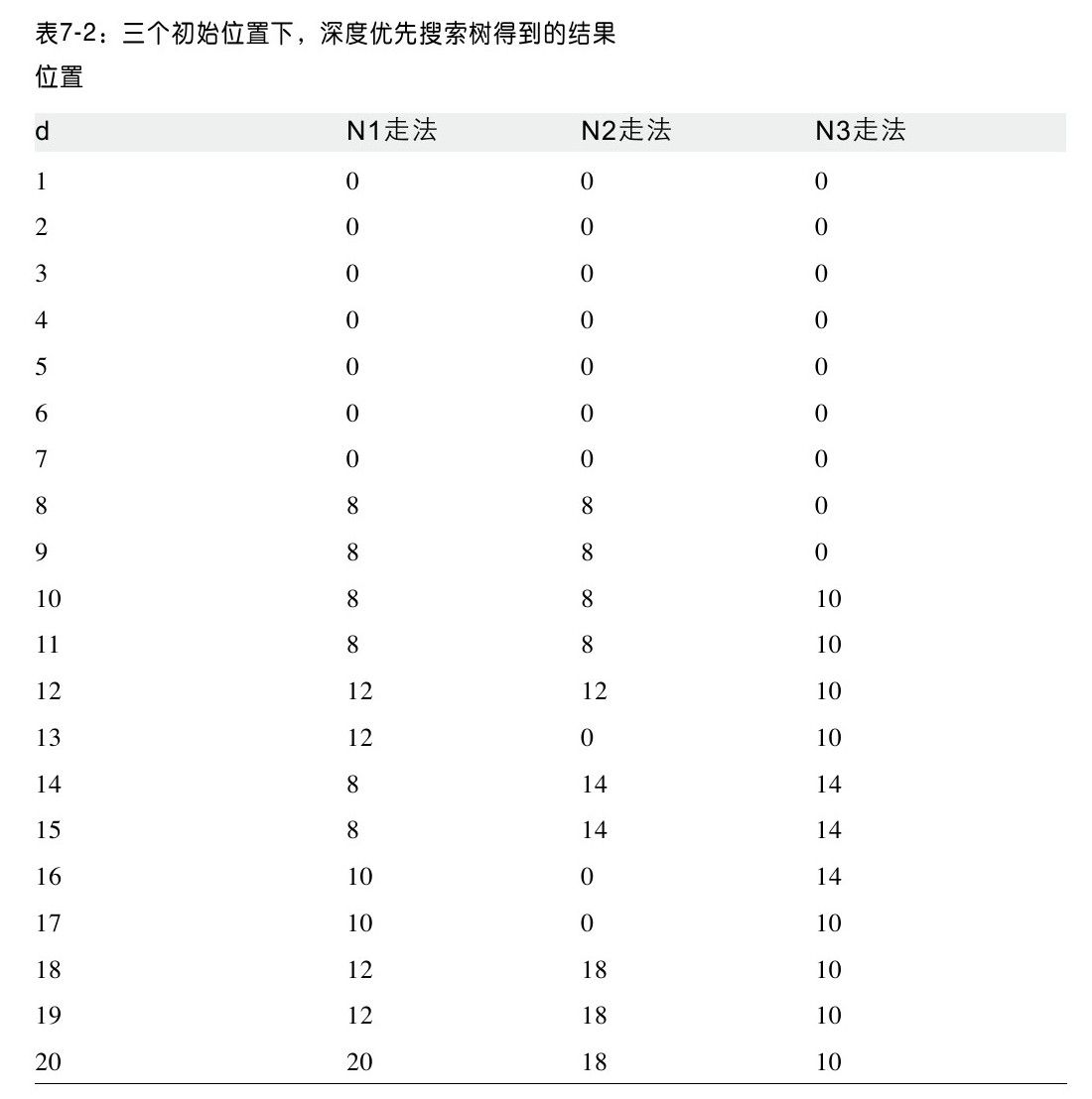 考虑初始状态N2,搜索深度为25,在搜索20 441个棋面状态之后,我们仍然没有得到解。这怎么可能?因为深度优先搜索不会重复访问棋面状态。搜索可是能够在第3451个棋面状态时就能够找到解。