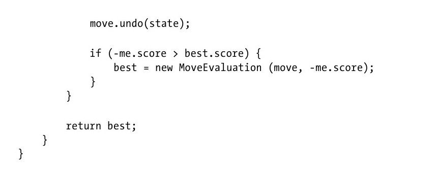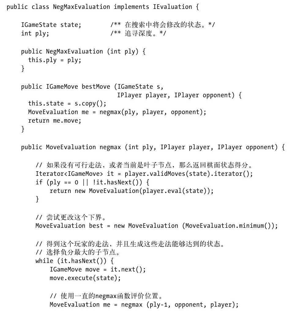 在例7-7中,每一个MoveEvaluation的得分是简单地以走棋的玩家角度来评价棋面状态。这样能够简化算法的实现。