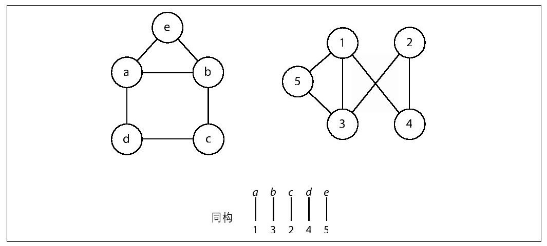 给定两个图:G1=(V1,E1)和G2=(V2,E2),是否存在节点集合V1和V2间的某种映射,使得两张图完全一致。