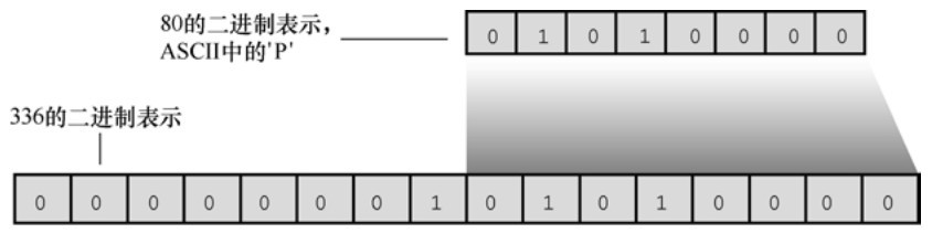 字符串常量"x"和字符常量'x'不同。区别之一在于'x'是基本类型(char),而"x"是派生类型(char数组);区别之二是"x"实际上由两个字符组成:'x'和空字符\0(见图4.3)。
