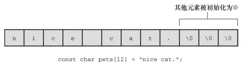 让编译器确定初始化字符数组的大小很合理。因为处理字符串的函数通常都不知道数组的大小,这些函数通过查找字符串末尾的空字符确定字符串在何处结束。