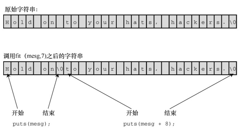 总之,strcpy接受两个字符串指针作为参数,可以把指向源字符串的第2个指针声明为指针、数组名或字符串常量;而指向源字符串副本的第1个指针应指向一个数据对象(如,数组),且该对象有足够的空间储存源字符串的副本。记住,声明数组将分配储存数据的空间,而声明指针只分配储存一个地址的空间。
