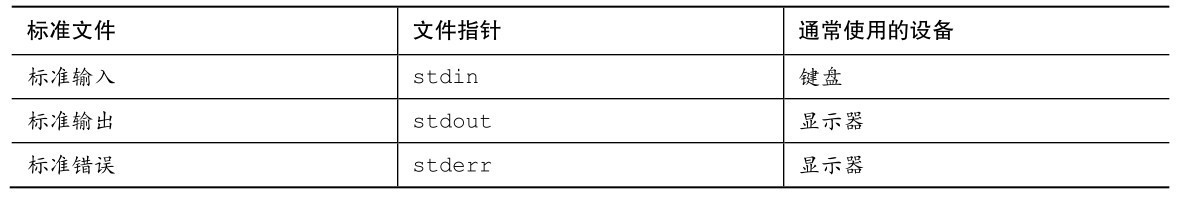 C程序会自动打开3个文件,它们被称为标准输入(standard input)、标准输出(standard output)和标准错误输出(standard error output)。在默认情况下,标准输入是系统的普通输入设备,通常为键盘;标准输出和标准错误输出是系统的普通输出设备,通常为显示屏。