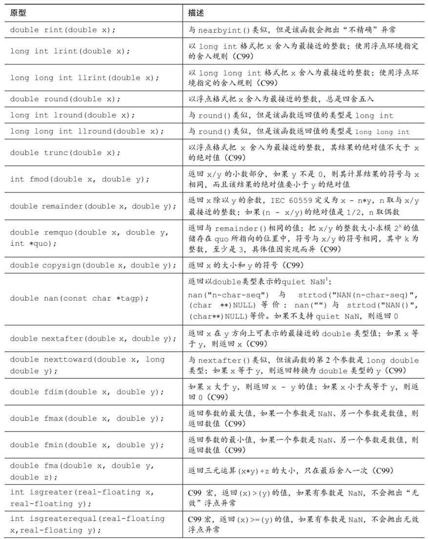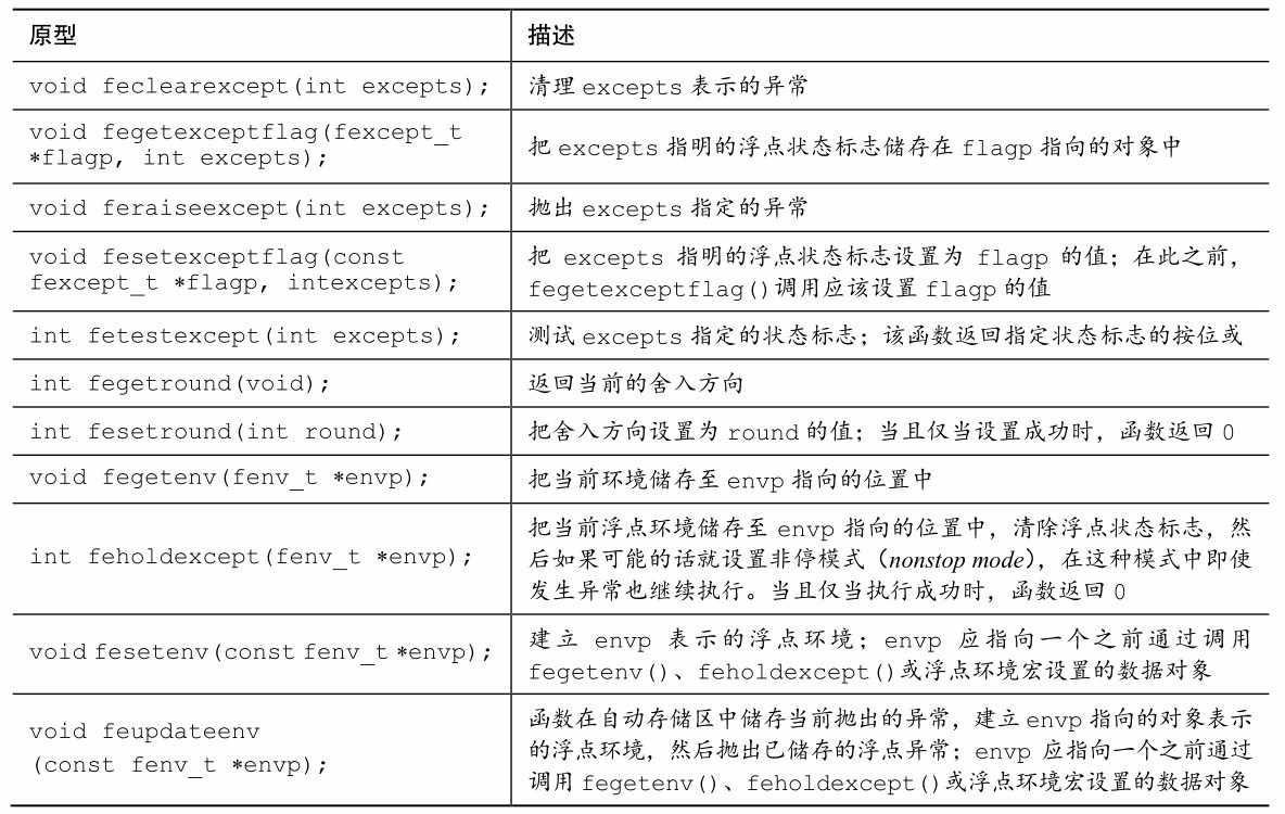 国际电工技术委员会(IEC)已经发布了一套浮点计算的标准(IEC 60559)。该标 准包括了浮点数的格式、精度、NaN、无穷值、舍入规则、转换、异常以及推荐的函数和算法等。C99纳入了该标准,将其作为C实现浮点计算的指导标准。C99新增的大部分浮点工具(如,fenv.h头文件和一些新的数学函数)都基于此。另外,float.h头文件定义了一些与IEC浮点模型相关的宏。