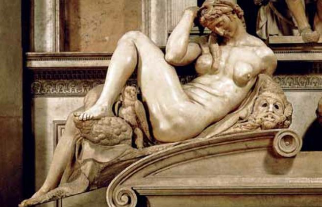 就在这时候,米开朗琪罗完成了那著名的洛伦佐·梅迪契与朱利阿诺·梅迪契墓上的四座雕像——《日》、《夜》、《晨》、《暮》,以及在这四座像上面的《思想者》与《力行者》。