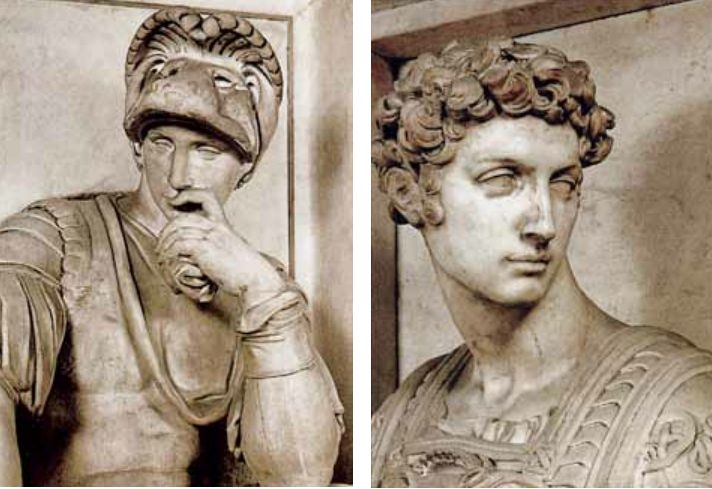 《思想者》(左,《乌尔比诺公爵像》)和《力行者》(右,《内穆尔公爵像》)