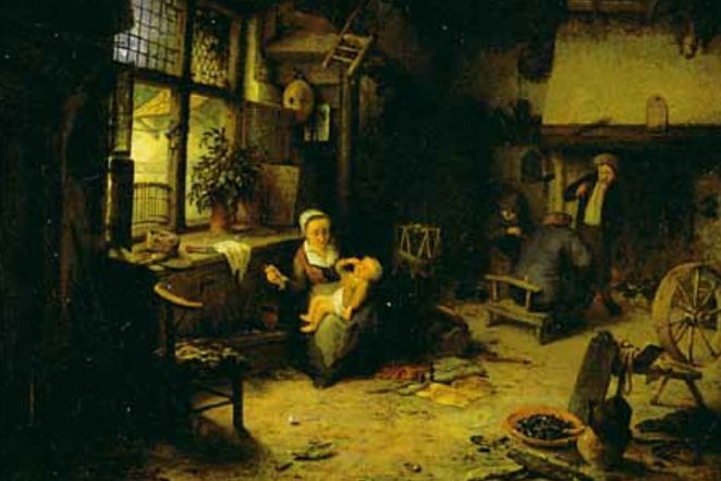 阿德里安·凡·奥斯塔德:《农夫家庭》,布面油画,1663年,34cm×40cm