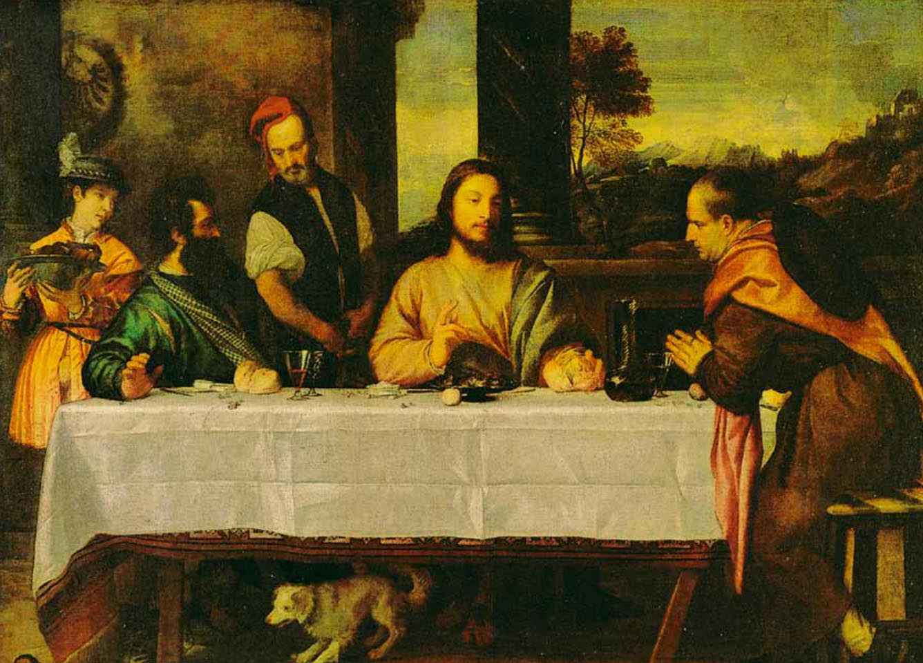 提香:《以马忤斯的晚餐》,布面油画,1535年,169cm×244cm