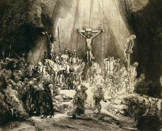 《三个十字架》,蚀刻铜版画,1653年,53.2cm×41.3cm