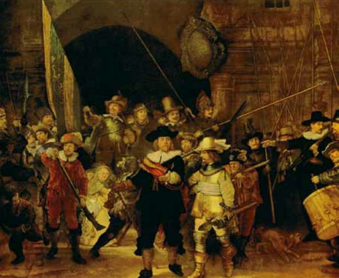 《夜巡》,布面油画,1642年,371cm×444.5cm