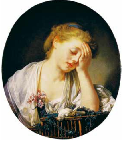 《因为死去的小鸟而伤心的少女》,布面油画,1765年,52cm×45.6cm