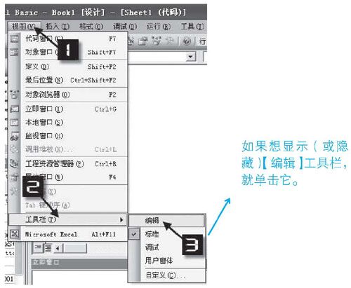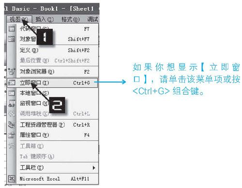 如果打开VBE窗口后,【立即窗口】(或其他窗口)没有显示,可以在【视图】菜单中设置显示它,如图2-13所示。