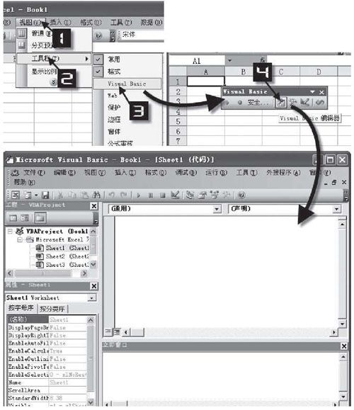 要进入VBE,首先必须启动Excel程序,启动Excel后,要切换到VBE窗口,常用的方法有以下几种。