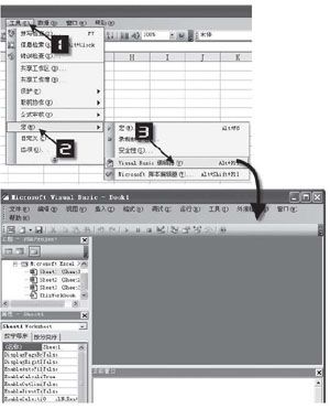 方法二:依次执行【工具】→【宏】→【Visual Basic编辑器】菜单命令,如图2-3所示。