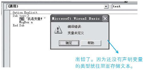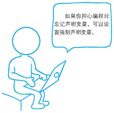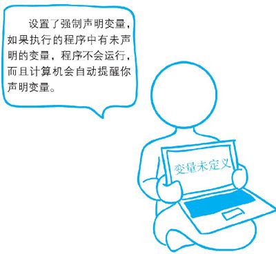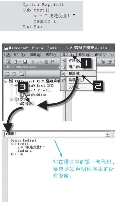 方法一:在模块的第一句手动输入代码:“Option Explicit”。