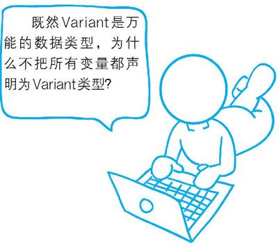 Variant类型比其他数据类型占用更大的存储空间(见表3-1),因此,编写VBA程序时,除非必须需要,否则应避免声明变量为Variant类型。