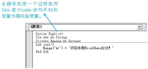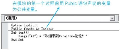 注意:公共变量必须在模块对象中声明,在工作表、窗体等对象中,即使使用Public语句声明变量,该变量也只是模块级变量。