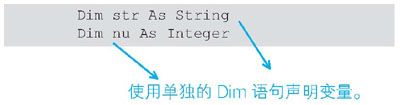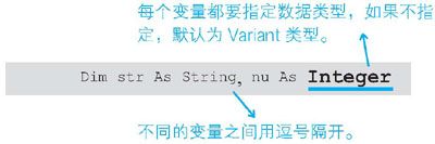 声明多个变量,可以写在同一个Dim后面,变量名之间用逗号隔开。