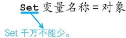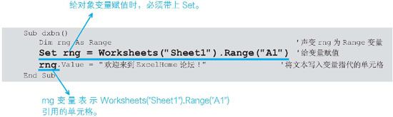 如果给对象变量(Object型,如单元格)赋值,语句为: